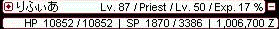 あとはギルメンのクルセさんと狩り行ったり相方とPDいったり、